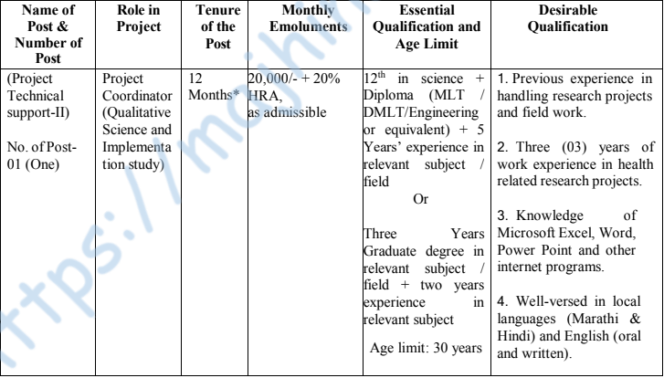 - १) प्रोजेक्ट टेक्निकल सपोर्ट III – रु. २८,०००/- दरमहा.