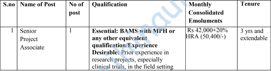 - १) प्रकल्प संशोधन वैज्ञानिक-I (वैदयकीय) – रु. ६७,०००/- दरमहा.