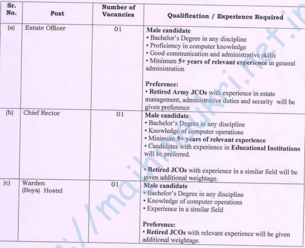 - Posts’ name – (See table/Ref. PDF/Visit website) –