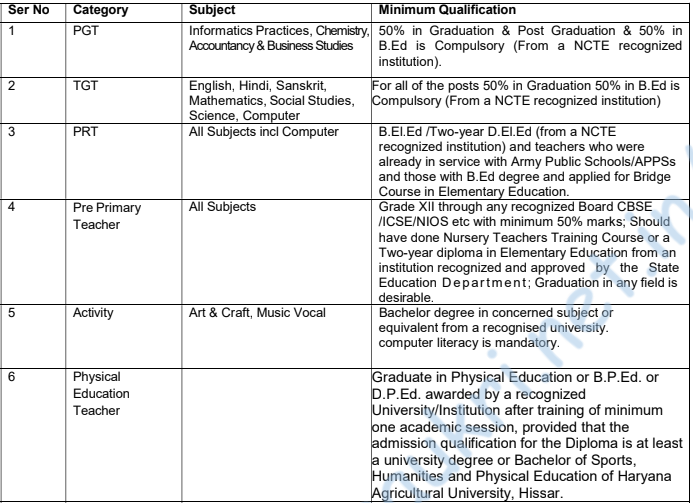 - Address for application – Army Public School Dighi C/o TB-2, Alandi Road, Dighi Camp, Pune – 411015.