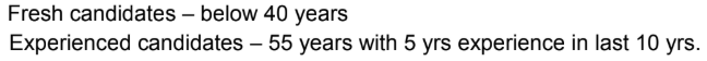• Age limit – (See table/advertise/ref. PDF/Visit website) –