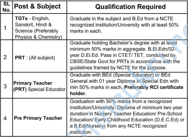 - Posts’ name – (See table/Ref. PDF/Visit website) –