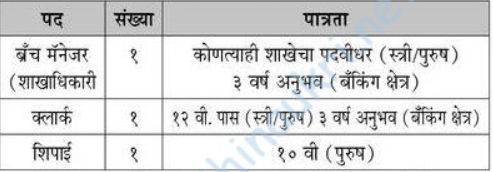 - Posts’ name – 1) Branch Officer 2) Clerk 3) Peon.