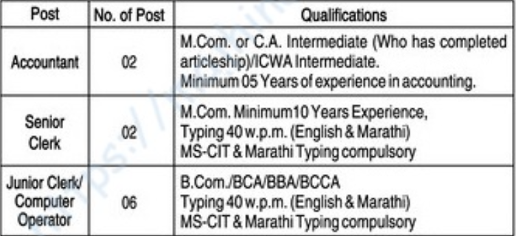 - Posts’ name – Accountant/Senior Clerk/Junior Clerk/Computer Operator