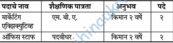 - मुलाखतीचे ठिकाण – शॉप नं. ३, द स्क्वेअर बिझनेस मॉल, ओल्ड मिल कंपाउंड, सुपर मार्केट, सोलापूर.