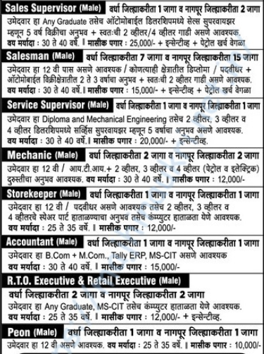 Avachat Marketing Company Recruitment 2026 – TVS 3 Wheeler Dealer Avachat Marketing Company Private Limited has arranged interview on date 24/1/2026 & 27/1/2026 to fill up various Administrative & Technical posts at Wardha & Nagpur District. There are total 41 vacancies. The job location is Wardha & Nagpur District. The Official website & PDF/Advertise is given below.