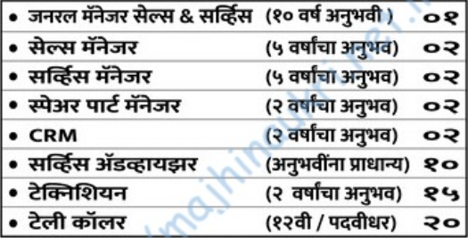 - मुलाखतीचे ठिकाण – बालाजी टीव्हीएस, पंडित हॉस्पिटल शेजारी, Zudio च्यासमोर, इच्छादेवी चौफुलीजवळ, जळगाव.