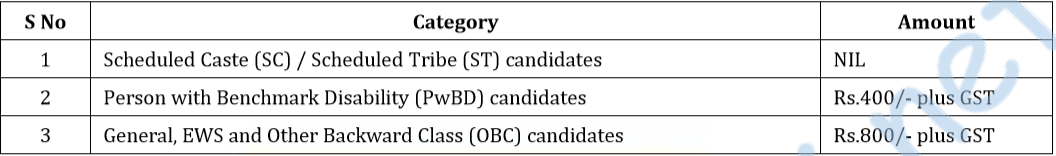 - Application fee – (For detail procedure of application fee payment see table/refer PDF/visit website) –