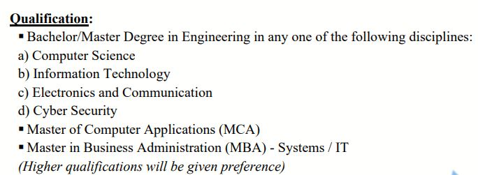 पदांचा तपशील मुख्य माहिती सुरक्षा अधिकारी (CISO) शैक्षणिक पात्रता किंवा अनुभव एकूण पद संख्या रिक्त जागा नोकरीचे ठिकाण मुंबई अर्ज पद्धती ऑनलाईन अर्ज करण्यासाठी अंतिम तारीख दि. २०/०८/२०२५.