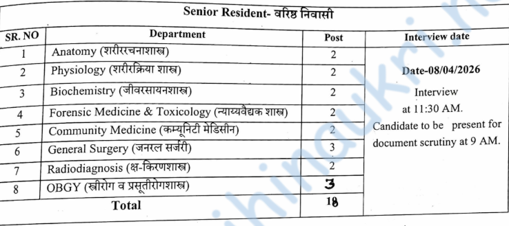 Current Update – For Senior Residents – Interview date – 24/3/2026.