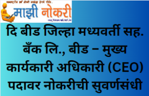 दि बीड जिल्हा मध्यवर्ती सहकारी बँक लि., बीड यांनी प्रसिद्ध केलेल्या जाहिराती नुसार येथे मुख्य कार्यकारी अधिकारी पदभरतीसाठी दि. ७/१/२०२६ पर्यंत ऑफलाईन अर्ज मागवण्यात येत आहेत. या भरती अंतर्गत १ जागा आहे. अधिकृत वेबसाईट आणि PDF जाहिरात लिंक खाली दिलेली आहे. “माझी नोकरी” या लिंक वरून टेलिग्राम चॅनल लगेच जॉईन करा.