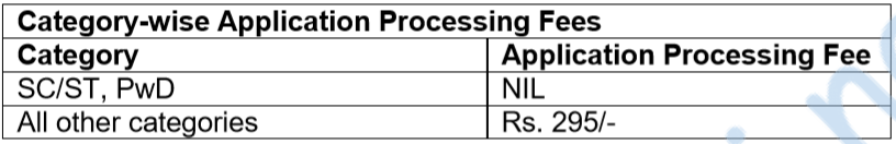 - Application fee – (See table/Ref. PDF/Visit website) –