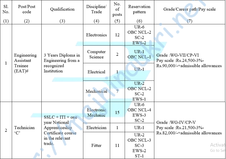 - Posts Name – (See table/Ref. PDF/Visit website) –