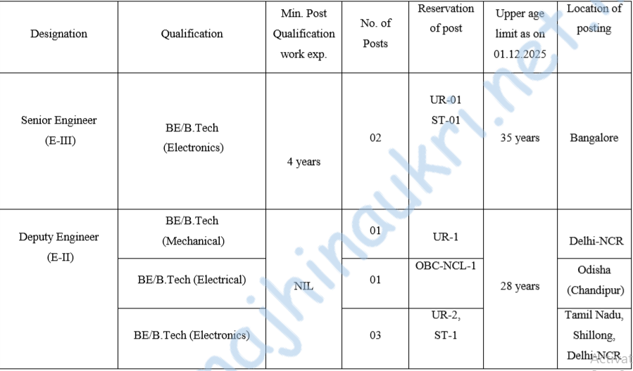 - प्रशिक्षणार्थी अभियंता-I – २८ वर्षे.
