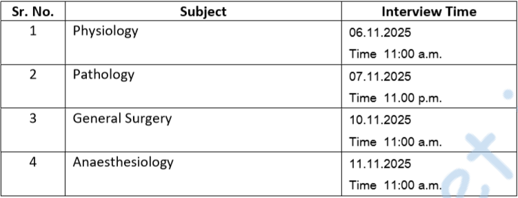 • Interview date & time – 06/11/2025, 07/11/2025, 10/11/2025 & 11/11/2025 at 11.00 am. (See table/Refer PDF/Visit website)