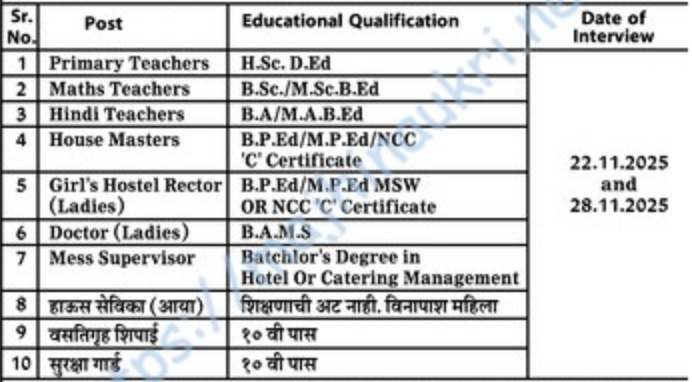 | मुलाखतीची तारीख आणि वेळ | दि. २२/११/२०२५ आणि दि. २८/११/२०२५ रिपोर्टींगची वेळ – सकाळी १०.०० वाजता. |