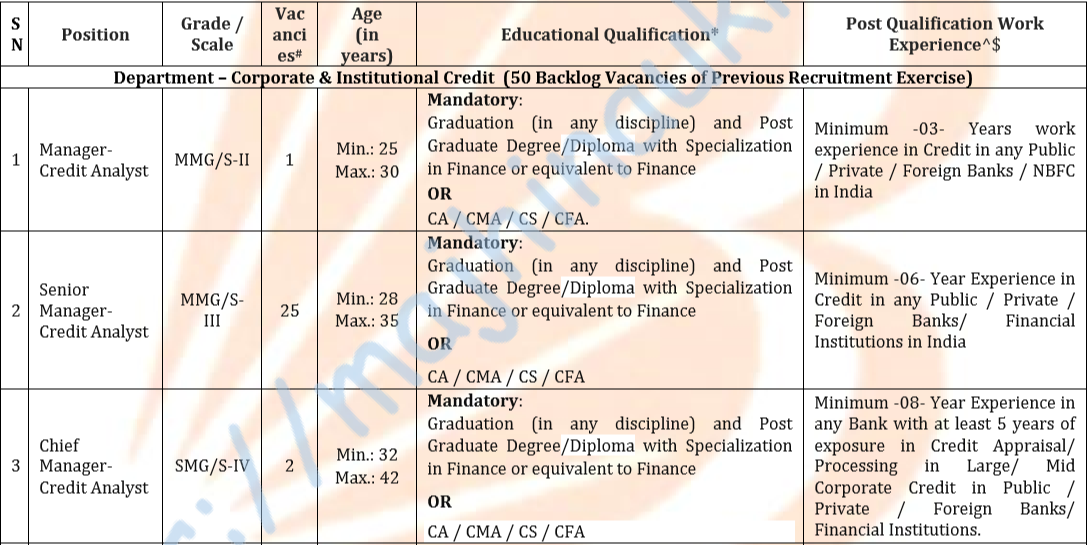 - Educational qualification – See table/Ref. PDF/Visit website.