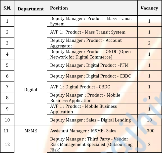• Assistant Manager : MSME – Sales – 22 to 32 years.