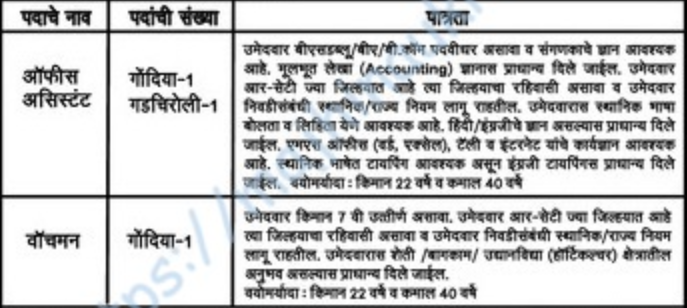 - Name of the posts – Office Assistant & Watchman