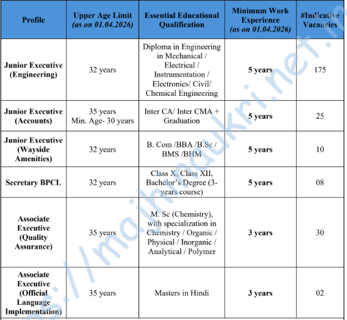 BPCL Executive Recruitment 2026Bharat Petroleum Corporation Limited (BPCL) invites Online applications in prescribed format till last date 17/05/2026 to fill up various Executive Cadre & Secretory posts. There are total 250 posts. The Official website & PDF/Advertise is given below.