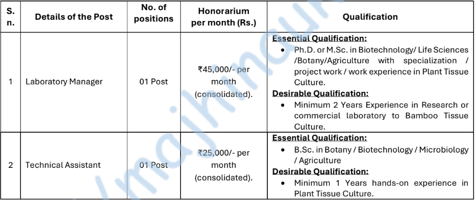- Posts’ name – Senior Faculty & Faculty in Bamboo Technology.