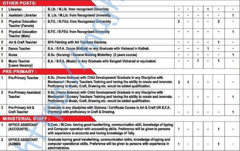 - Posts’ name – (See table/advertise) –