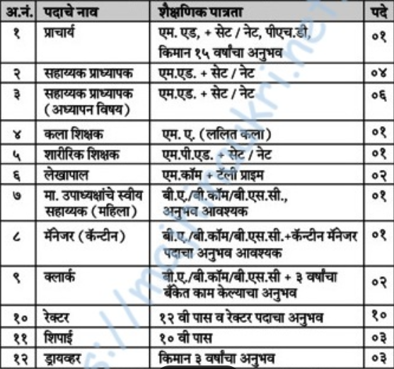 - पदांचा तपशील, अटी आणि शर्ती, निवड प्रक्रिया, आरक्षण, पात्रता निकष, अर्जासोबत जोडावयाची आवश्यक कागदपत्रे, अर्ज प्रक्रिया यांच्या विस्तृत माहितीसाठी आणि इतर माहितीसाठी जाहिरात पहा.