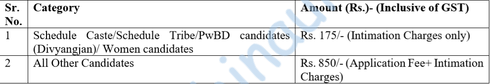 - Application fee – Rs. 1000/- + GST (General class) & Nil for SC/ST/PWBD/Women candidates. (Ref. PDF/Visit website)