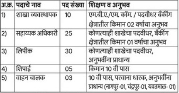 | शैक्षणिक पात्रता आणि अनुभव | शैक्षणिक पात्रताकरिता तक्ता पहा/जाहिरात बघावी. |