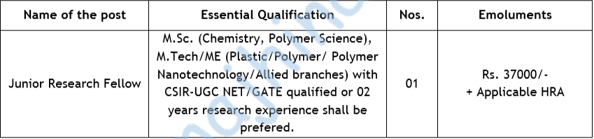 CIPET Bengaluru JRF Job 2025 – Administrative Officer, Central Institute of Petrochemicals Engineering & Technology (CIPET), Bengaluru invites Online & Offline applications in prescribed format till last date 15/12/2025 to fill up post of Junior Research Fellow under project. There is 1 vacancy. The job location is Bengaluru. The Official website & PDF/Advertise is given below.