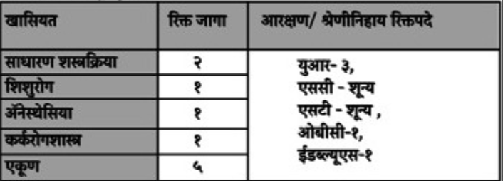 - पदांविषयी तपशील, अटी आणि शर्ती, अर्ज प्रक्रिया, विहित नमुना अर्ज, निवड प्रक्रिया, आरक्षण, इतर माहितीसाठी जाहिरात/PDF पहा आणि www.cr.indianrailway.gov.in.> News &Recruitment> Recruitment > Notification >Engagement of Senior Resident येथे भेट दया.