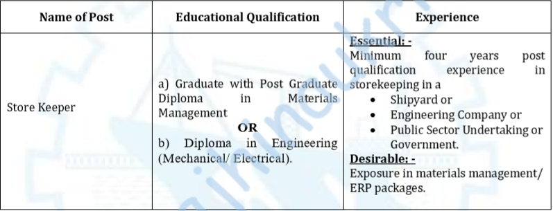• For all the details of post, terms & conditions, experience, selection procedure, application procedure, prescribed format application form, documents required along with application form see advertise/ref. PDF/Visit website – https://cochinshipyard.in/.