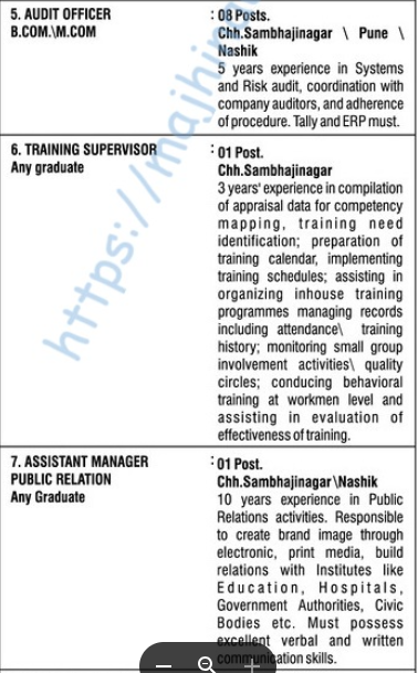 - मुलाखतीचे ठिकाण – पाटीदार भवन, हॉटेल अमरप्रीत समोर, जालना रोड, छत्रपती संभाजीनगर – ४३१००५.
