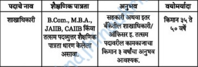 | या पदांसाठी भरती | शाखा व्यवस्थापक |