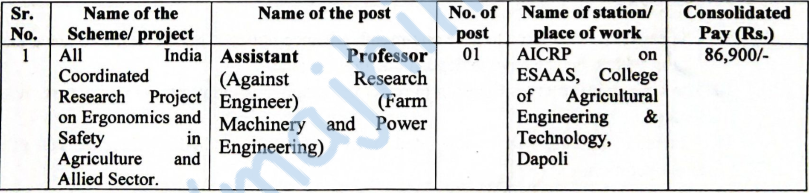 • मुलाखतीचे ठिकाण – एग्रीकल्चरल बॉटनी विभाग कार्यालय, कृषी महाविदयालय, दापोली, जि. रत्नागिरी – ४१५७१२.