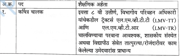 | या पदांसाठी भरती | कर्षित्र चालक |