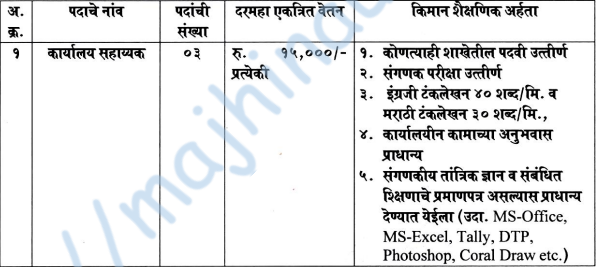 - वेतनमान – रु. १५,०००/- दरमहा (PDF/वेबसाईट बघावी)