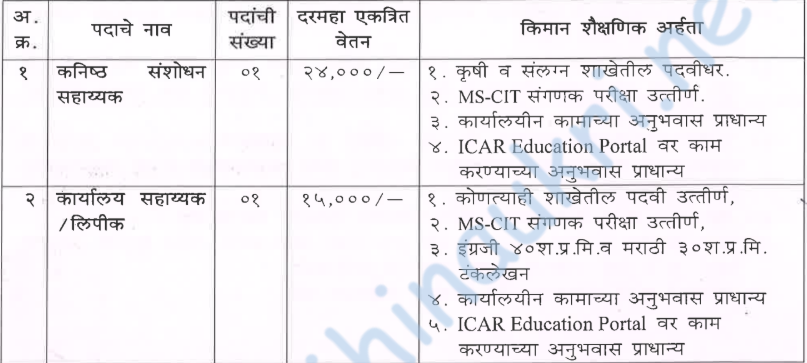- कनिष्ठ संशोधन सहाय्यक – रु. २४,०००/- दरमहा.
