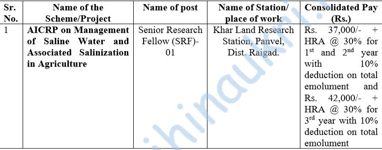 - Venue for interview – Office Of Director Of Research, Dr. Balasaheb Sawant Kokan Krishi Vidyapeeth, Dapoli.