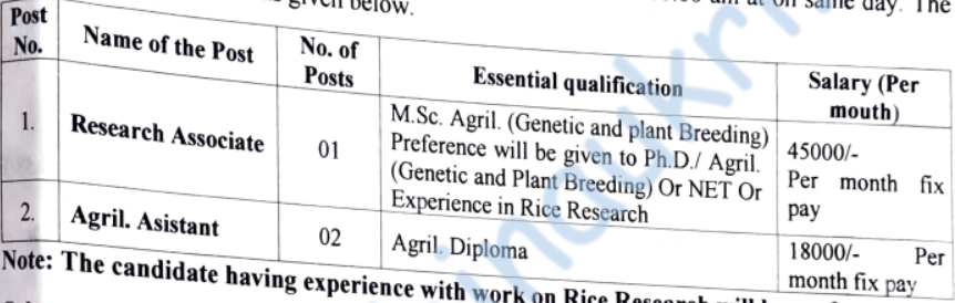 - Venue for interview – Office Of Principal Investigator & Rice Specialist, Regional Agriculture Research Station, Karjat, Dist. Raigad – 410201.