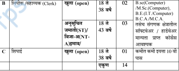 - वयोमर्यादा – तक्ता पहा/PDF/वेबसाईट बघावी.