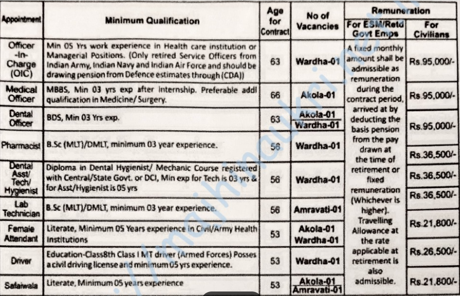- Address for application – OIC, Stn HQ (ECHS CELL), CAD Pulgaon, Teh. Deoli, Distt. Wardha, Pin – 442303.