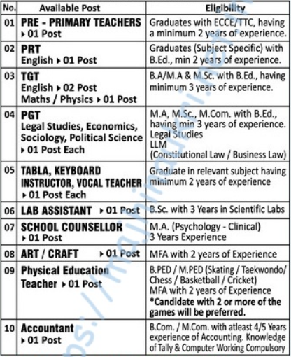 - E-Mail ID for application – essenceintschool@gmail.com.