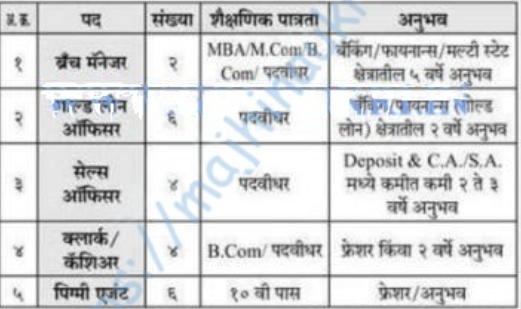 | मुलाखतीचे ठिकाण | राजारामपुरी, ६ वी गल्ली, पूर्व बाजू, पंढरपूर अर्बन बॅंकेशेजारी, कोल्हापूर. |