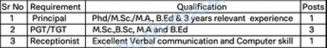 • Principal’s postMinimum Rs. 50,000/- pm.