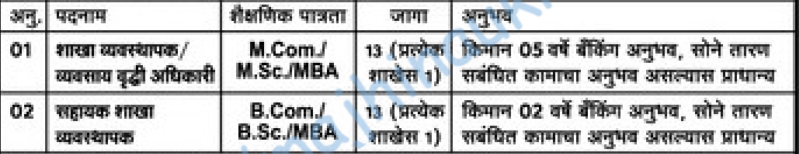 गिरनार अर्बन क्रेडिट को-ऑपरेटिव्ह सोसायटी मर्यादित, नागपूर यांनी प्रसिद्ध केलेल्या जाहिराती नुसार नागपूर जिल्ह्यांतर्गत विविध शाखा येथे शाखा व्यवस्थापक/वावयास वृद्धी अधिकारी आणि सहाय्यक शाखा व्यवस्थापक पदभरतीसाठी दि. २०/१/२०२६ रोपर्यंत ऑनलाईन/ऑफलाईन अर्ज मागवण्यात येत आहेत. या भरती अंतर्गत एकूण २६ जागा आहेत. अधिकृत वेबसाईट आणि PDF जाहिरात लिंक खाली दिलेली आहे. “माझी नोकरी” या लिंक वरून टेलिग्राम चॅनल लगेच जॉईन करा