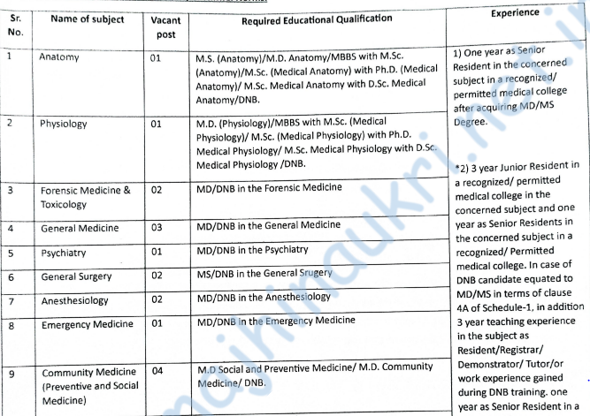 - Name of the posts – 1) Assistant Professor 2) Senior Resident