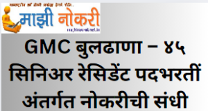 GMC Buldhana Recruitment 2025 – Dean, Government Medical College, Buldhana invites Offline applications in prescribed format 30/12/2025 & has arranged interview on date 31/12/2025 to fill up posts of Senior Resident. There are total 45 vacancies. The job location is Buldhana. The Official website & PDF/Advertise is given below.