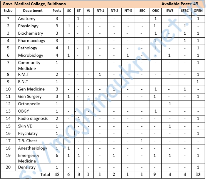 - अर्ज मिळण्याचा पता – राजपात्रित विभाग, शासकीय वैद्यकीय महाविद्यालय, बुलढाणा.
