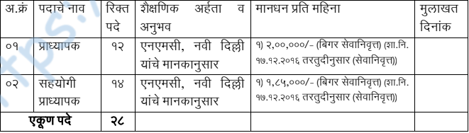 या पदांसाठी भरती चिकित्सालयीन व अचिकित्सालयीन प्राध्यापक आणि सहयोगी प्राध्यापक शैक्षणिक पात्रता आणि अनुभव शैक्षणिक पात्रताकरिता PDF/वेबसाईट बघावी. एकूण पद संख्या २८ जागा नोकरीचे ठिकाण बुलढाणा. अर्ज पद्धती ऑफलाईन – व्यक्तिशः. अर्ज करण्यासाठी तारीख दि. १३/१/२०२६ ते दि. २८/१/२०२६ सकाळी ११.०० ते संध्याकाळी ५.०० वाजेपर्यंत.